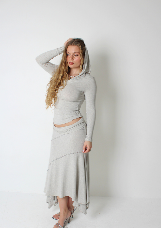 Grey Hanky Hem Maxi Skirt only sample size 10/12