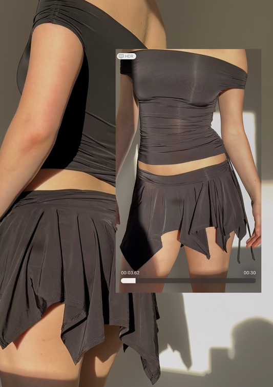 The Bubble Butt Mini Skirt In Chocolate Brown photo sample size 8/10