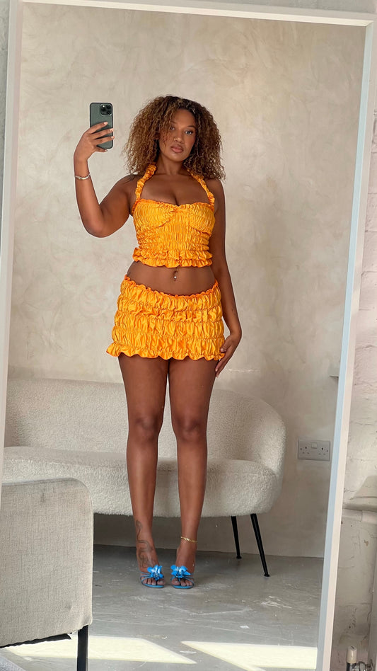 Scrunchie mini skirt tangerine size 12 and 10 available